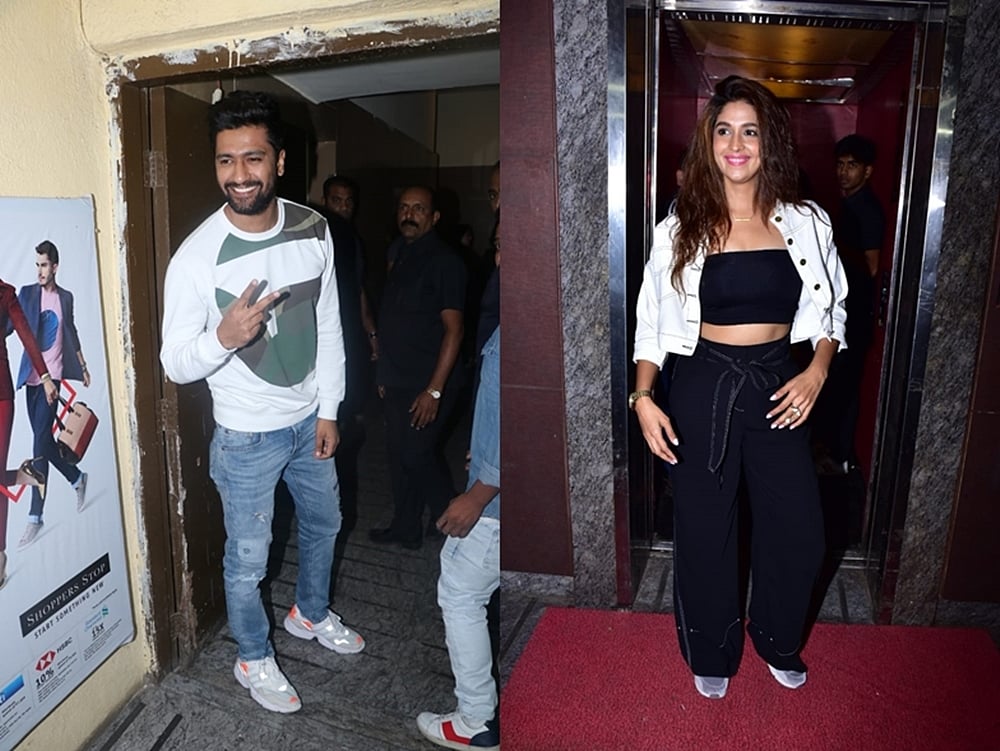 A lot of eyebrows were raised when Harleen Sethi who is rumored to be dating Vicky Kaushal made her presence at a special screening of Uri, yesterday in Mumbai. While Vicky kept it casual in a white tee and blue denim, Harleen who was sporting black separates with a white jacket chose to be comfy. Check out the pictures below.