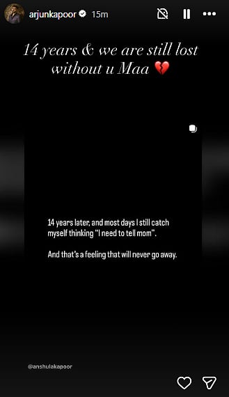 While Arjun remembered his mother on her death anniversary, wrote on social media, "14 years & we are still lost without u Maa", followed by a broken heart emoji.