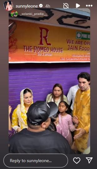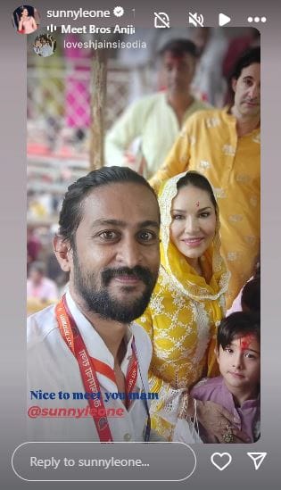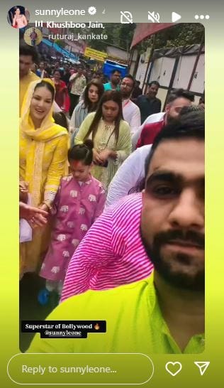 Sunny's fans were super excited to see her at Lalbaugcha Raja. They are sharing the videos of the actress on their Instagram, and Sunny is resharing them on her Instagram story. Check out the post of the fans below...