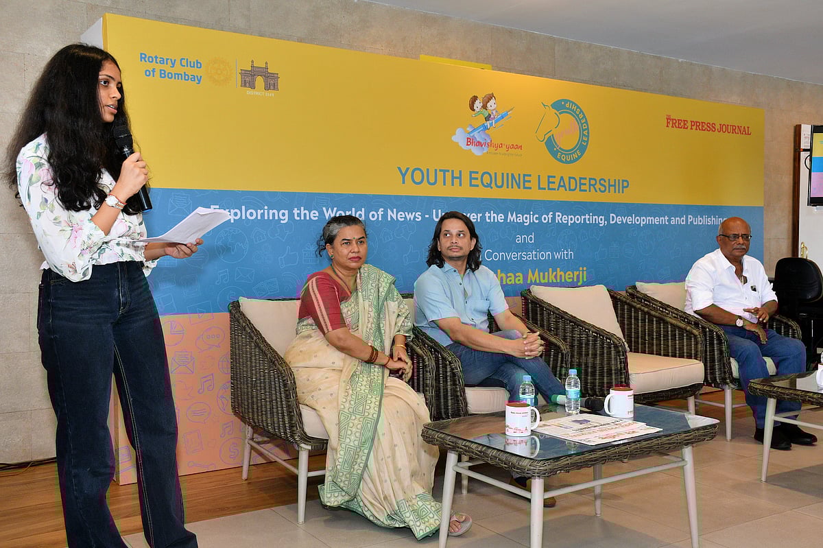 Nearly 50 students, who have been learning leadership skills, on Saturday further enhanced them by attending an event called ‘Youth Equine Leadership: Exploring the World of News - Uncover the Magic of Reporting, Development and Publishing’. The programme is pioneered by Vidhushi Karnani. Students and alumni of The Bhavishya-Yaan project, which is run by the Rotary Club of Bombay and looks to plug drop out ratio in municipal schools, learnt about the functioning of a newsroom and how it is led by those working in it.