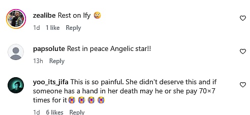 A fan wrote, "I'm short of words. Rest in Peace Nanya (sic)." Another Instagram user commented, "This is so painful. She didn't deserve this and if someone has a hand in her death may he or she pay 70×7 times for it (sic)." Check out the comments below...