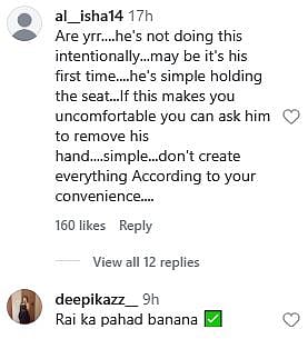 Another Instagram user wrote, "Are yrr....he's not doing this intentionally...may be it's his first time....he's simple holding the seat...If this makes you uncomfortable you can ask him to remove his hand....simple...don't create everything According to your convenience.... (sic)."