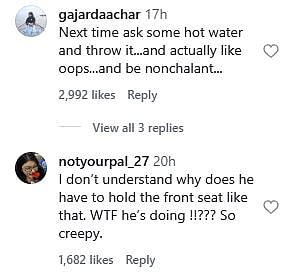 One more netizen commented, "I don’t understand why does he have to hold the front seat like that. WTF he’s doing !!??? So creepy. (sic)." Check out the comments below...