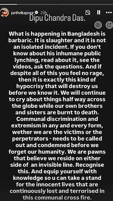Meanwhile, several other celebrities like Janhvi Kapoor, Munawar Faruqui, Tony Kakkar, Swara Bhasker, Devoleena Bhattacharjee, Jaya Prada, and others also condemned violence against Hindus in Bangladesh.