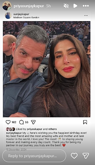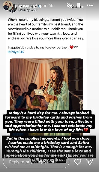 Last year, Sunjay had penned a sweet birthday wish for Priya. She has shared the post on her Instagram story.