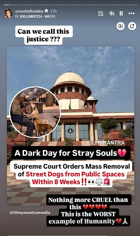 Urvashi shared a series of pictures in which she is seen with cats and dogs. She wrote, "I AM NOT GOING TO MINCE MY WORDS OR MY THOUGHTS FOR THIS POST: For those questioning my genuinity & authenticity towards the stories that I have been putting up regarding the new Supreme Court order for INDIES (who the world calls STRAYS) here it is IN YOUR FACE .. the answer to all your negativity !! if you had chosen to genuinely know me or my family (which you clearly do not) your negativity & petty thoughts would be valid."