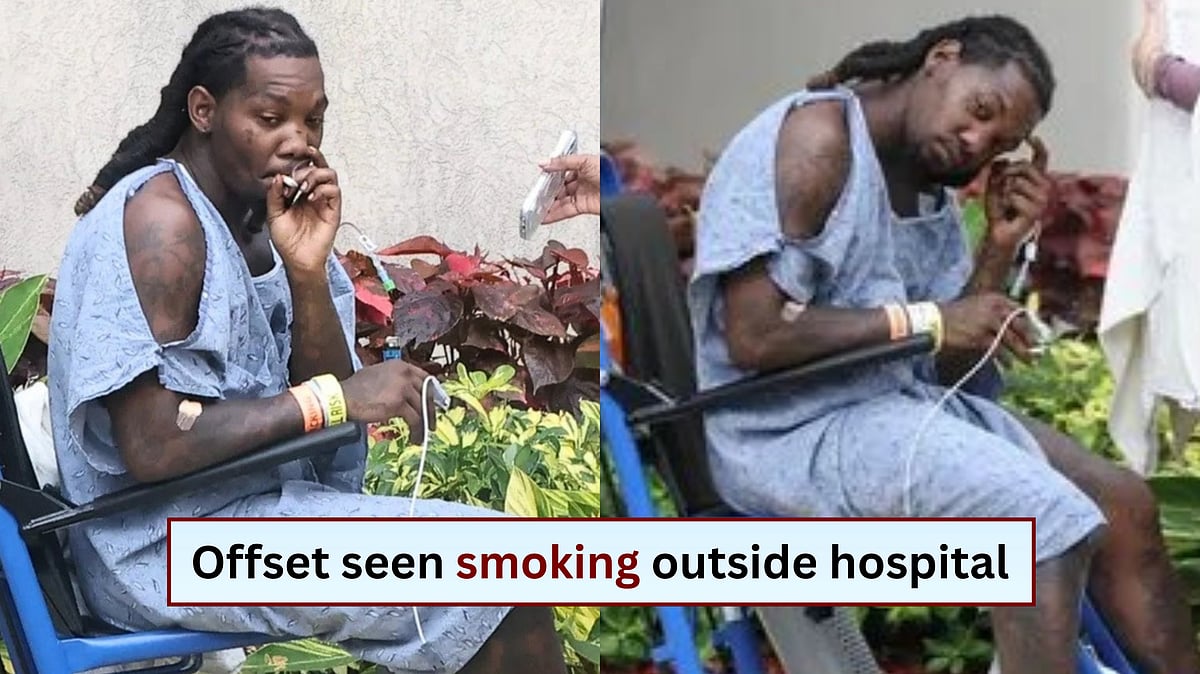 Rapper Offset was seen smoking a cigarette outside a Florida hospital shortly after being shot in the leg. The artist, whose real name is Kiari Kendrell Cephus, appeared outside the medical facility in an ICU wheelchair as he recovered from the incident. He was shot on Monday.