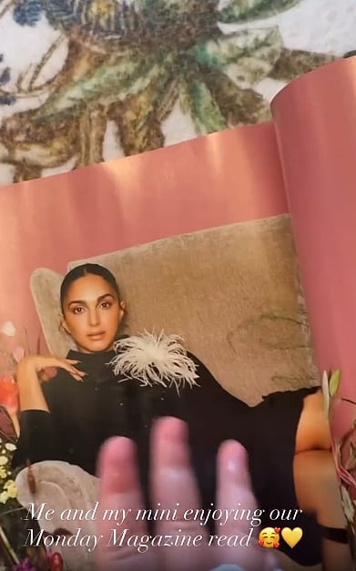 The heartwarming clip, posted by Kiara on her Instagram story, features the actress interacting with her baby in a gentle, playful voice as she flips through a magazine.