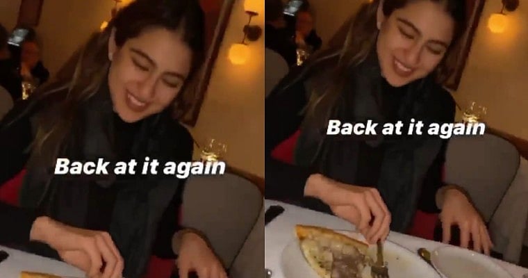 Sara Ali Khan has often expressed her love for pizzas and how she couldn't have one for years through her weightless journey. But, now it seems that she is finally enjoying her favourite dish as she shared a video of the same looking as delighted as ever.