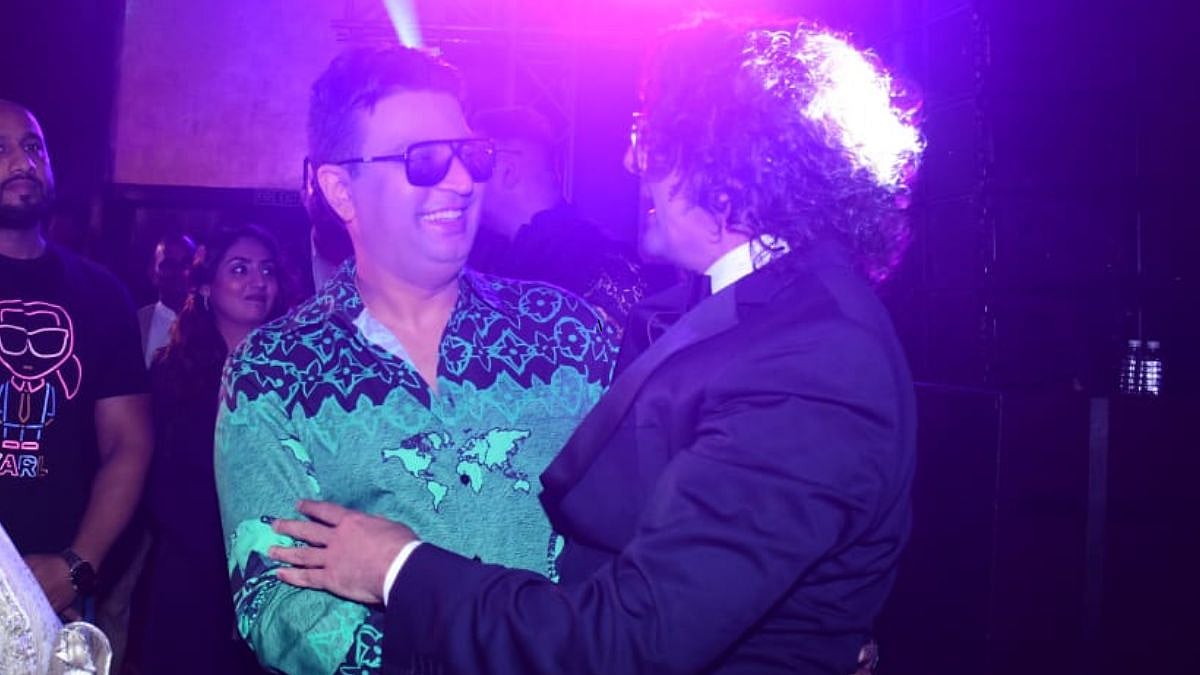 Bollywood playback singer Sonu Nigam celebrated his 50th birthday bash in the city on Saturday night and it was a grand, star-studded affair. Despite the who's who of B-Town attending the party, all heads turned towards one man when he arrived -- Bhushan Kumar. And he did not just mark his presence, but he was also seen all smiles with Nigam and they hugged, signifying all is well, three years after the infamous war of words on social media.