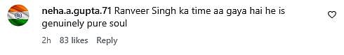 Netizens are very happy with Ranveer's sweet gesture towards Bhima. A netizen commented on the video, "Ranveer Singh ka time aa gaya hai he is genuinely pure soul (sic)."