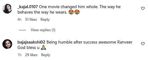 Another Instagram user wrote, "Being humble after success awesome Ranveer God bless u (sic)." One more netizen commented, "Great thing is he didn't just sign and leave, he spent time talking (sic)." Check out the comments below...