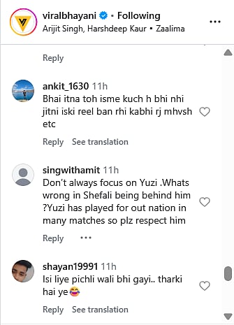 Reacting to the video, an Instagram user commented, "Chahal ko pata hai agar sath me photo li toh Shefali ke sath bhi link up shuru kar denge," whereas another wrote, "I think new connection😍😍😍"