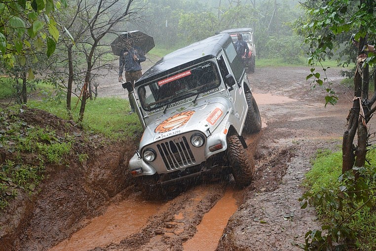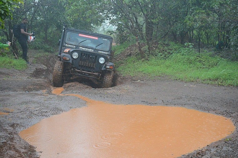 The Mahindra guys have gone a step further and installed walkie-talkies in every car, so that there’s communication even with the windows down on a noisy rainy day like today. Ease it into second gear, let the car drop and watch the suspension work its magic. Not THAT difficult, right?