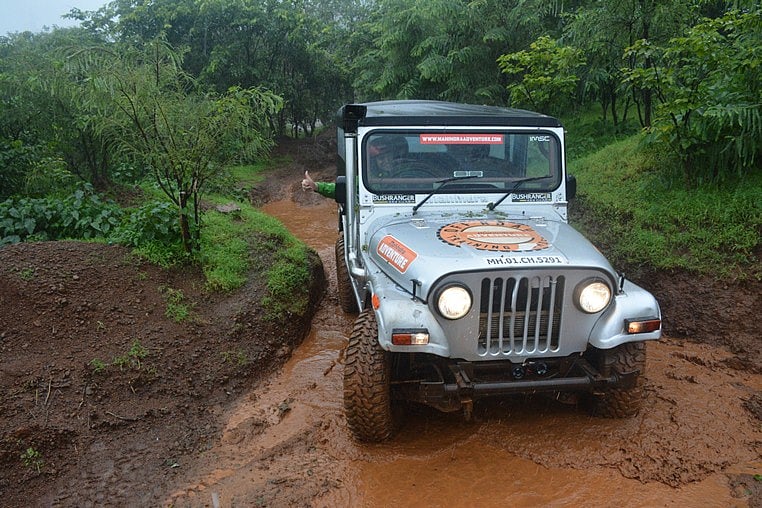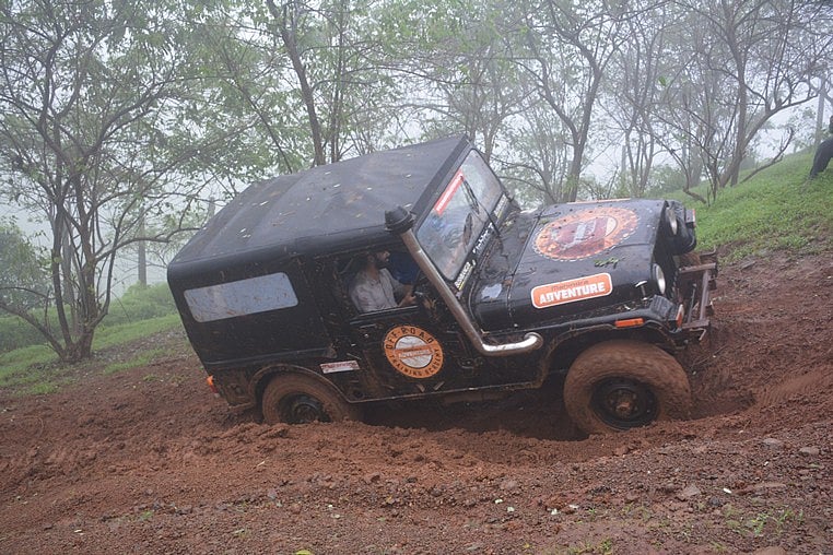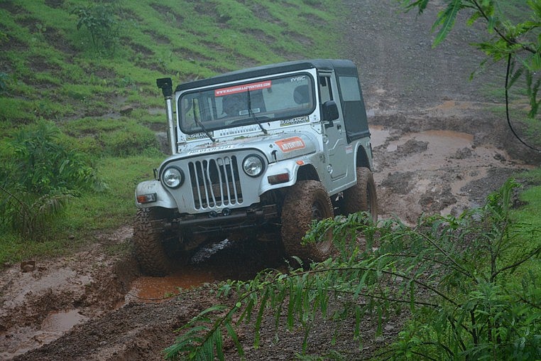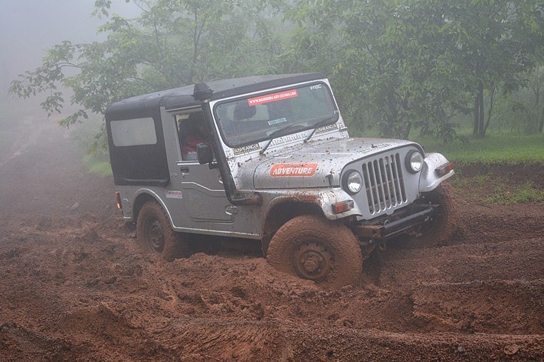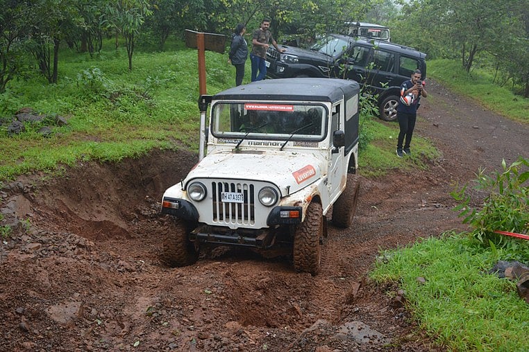 Listen to the fresh instructions on the radio, give the steering wheel a few violent turns, steady the throttle and let the differential provide grip to the tyres in contact. Reverse, move ahead, get stuck. Keep at this for a couple of times till the Thar finally powers itself out and climbs the hill.