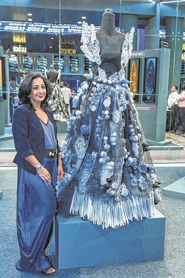 A monochromatic mermaid skirt showcases the spirit of water through a realistic lens with a colour palette that calms the viewer. Inspired by the fluidity and intricacy of underwater forms, these sculptural works, including eye-catching coral reef formations, are on display until March 11.