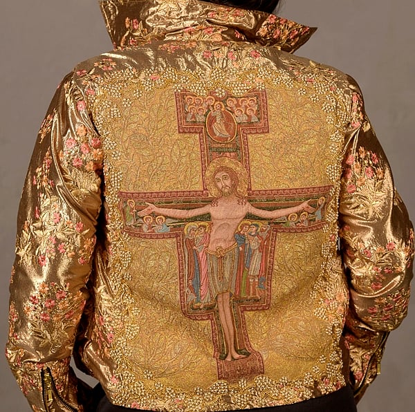 The Christian Vintage Art Collection objet d’art are one-of-a-kind, offering a wide range of interpretations of bejewelled Christian art in expressive Byzantine/ Venetian/ Italian influenced vintage art pieces, ranging from designer jackets to show pieces, to huge black, white and colourful hand-painted beds, to interior design pieces.