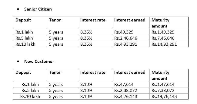Below is an illustration of your earnings with a Bajaj Finance FD with earnings payable at maturity.