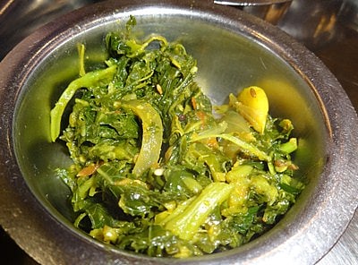 Wash, chop amaranth leaves. Heat oil in a pan and sauté onion till it sweats (not pink or brown) and garlic pods. Add tomatoes and stir them together. Now introduce the leaves. Add salt and mix them together till it is done. Serve with fulkas.