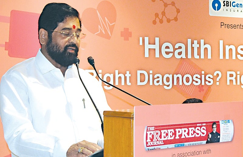 Eknath Shinde, Health Minister, Maharashtra, delivers the keynote address at the health conference organised by the Free Press Journal. He appeals to the private sector to take a step forward and promises assistance from the government.