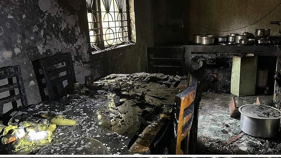 SANGUEM: The family members of Imtiaz Sharmadi residing at Kariamoddi, Curchorem had a miraculous escape after the gas cylinders suddenly caught fire when his wife and another family member were cooking in the kitchen.