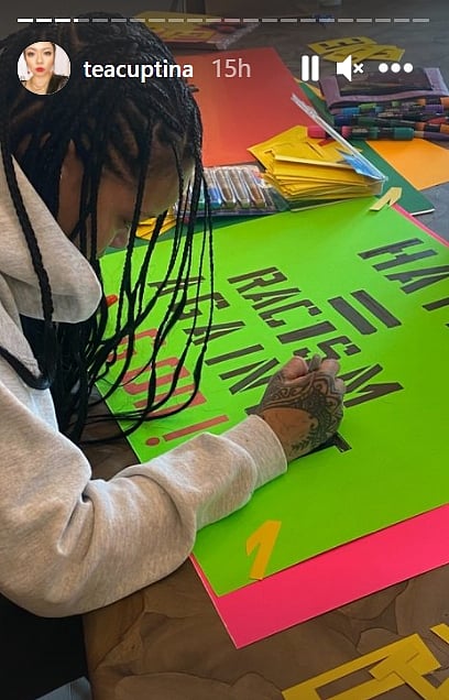 Tina shared moments from the protests featuring the singer, who also made posters.