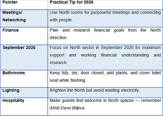 In 2026, the North sector becomes a hub of support and finance. Conscious Vaastu® teaches us that energy is not about superstition but about conscious usage. By respecting and activating the North, we nurture relationships, strengthen networks, and align with financial growth.