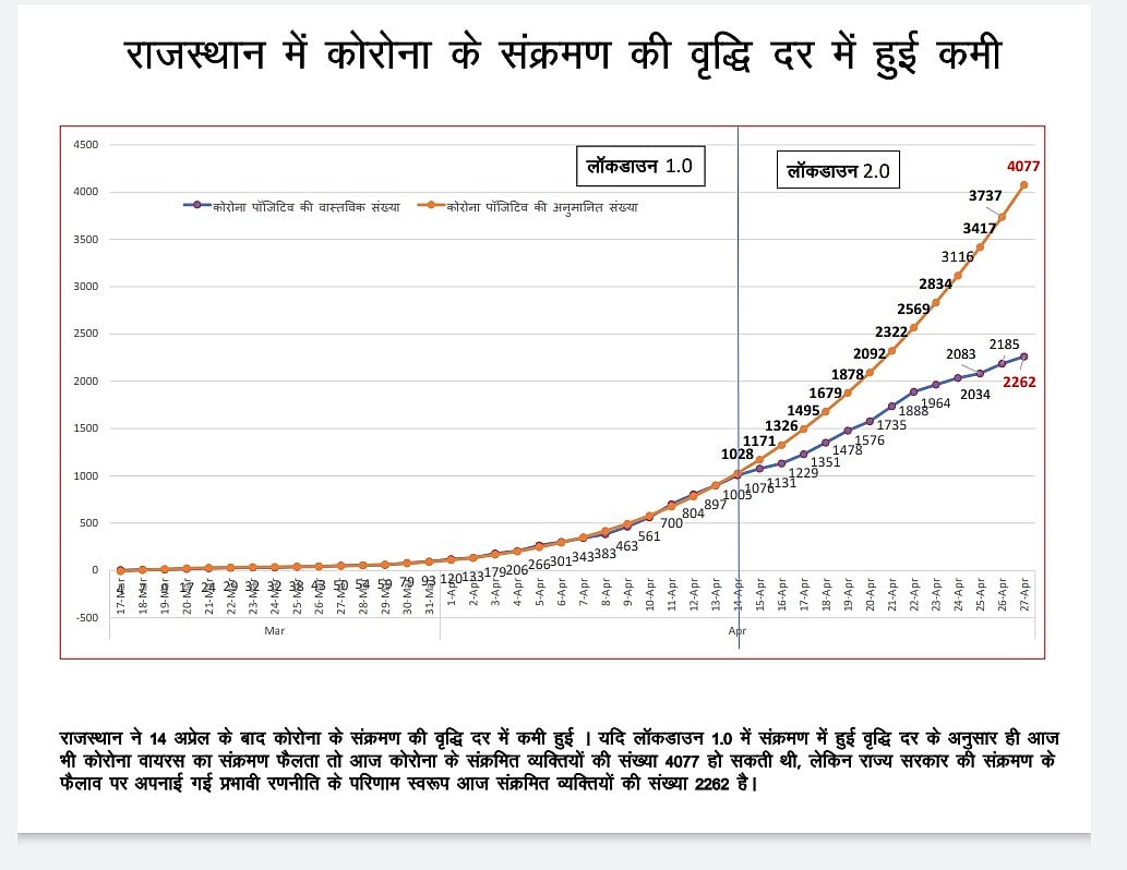 Rajasthan Health Minister Dr Raghu Sharma informed, “Recovery of positive in Rajasthan has been very encouraging. Almost one third of those who tested positive have subsequently tested negative. We are in the process of increasing our rate of testing which is presently at 6,000 per day to 10,000 per day. The rate of spread of the infection has also been very proactive. Had it been spreading at the rate of April 14 the total number of positives would have reached 4,077, but we have contained it to 2,262. Total seven places continue to be hotspots and we are an average of 4,000 samples per day. The pendency of reports has also been cleared.”