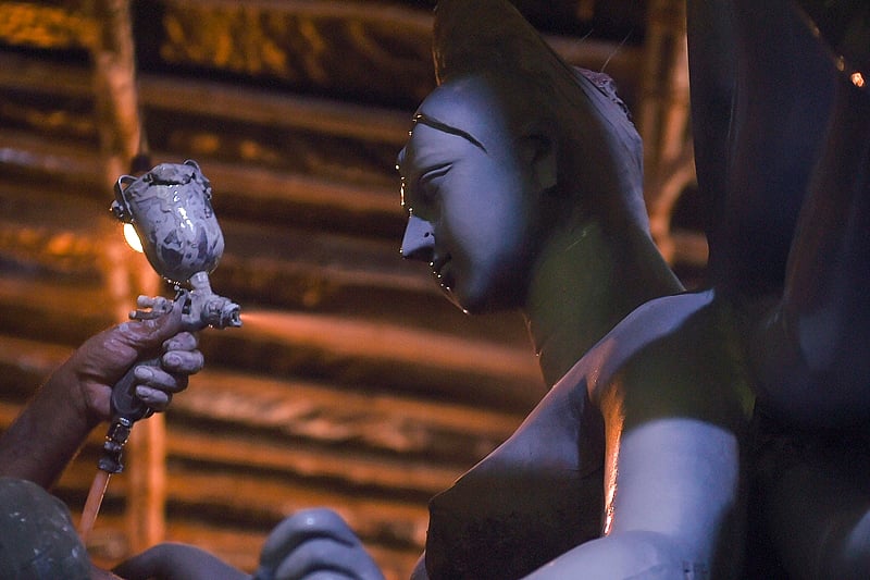 The 13-feet tall idol is coming up at the famed Santosh Mitra Square, earlier called Lebutala, about 700 meter from the bustling Sealdah Railway station, making the organisers confident of the marquee becoming The Destination during the coming five-day Durga puja carnival - the biggest festival in this part of the world - beginning October 4.