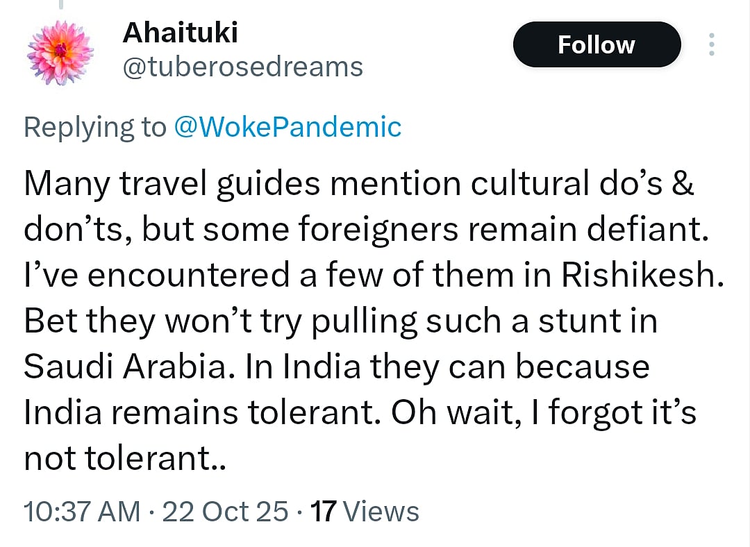 While some users condemned the act as disrespectful to religious sentiments, others defended the tourist’s actions, citing double standards in how similar behaviour by men is perceived. One user commented, “Aadmi log kachcha pehan kar nahaye toh woh disrespect nahi?” highlighting that Indian men often bathe in their undergarments without facing criticism.