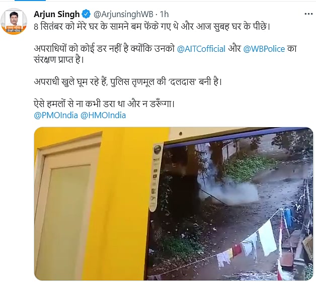 “MP Arjun Singh is BJP’s observer for the Bhabanipur by-poll. Ever since the news of his appointment made it to the public domain, his house is being targeted.Let it be known that none of this is going to help the TMC win the by-poll. Not even repeat visits to Sola Ana Masjid,” read the tweet.