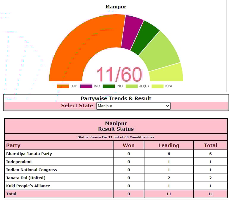 Manipur elections 2022: BJP leading on 6 seats, JD(U) on 2, Congress on ,1 as per EC