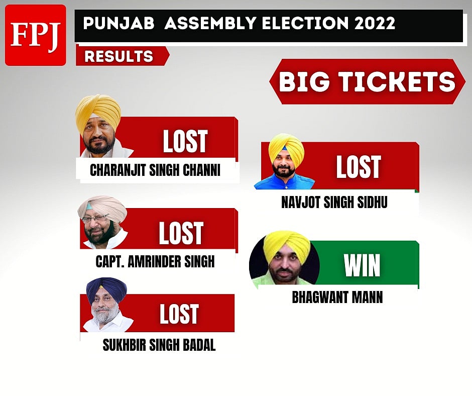 Punjab elections 2022: Bhagwant Mann wins, Navjot Singh Sidhu and Charanjit Singh Channi lose