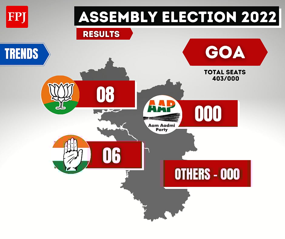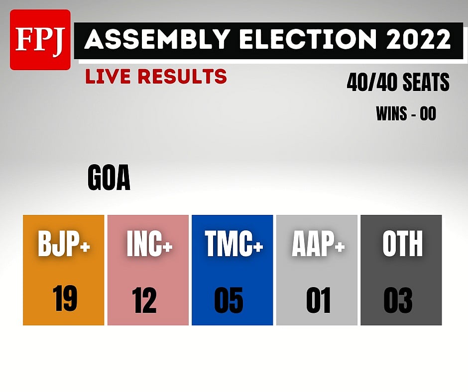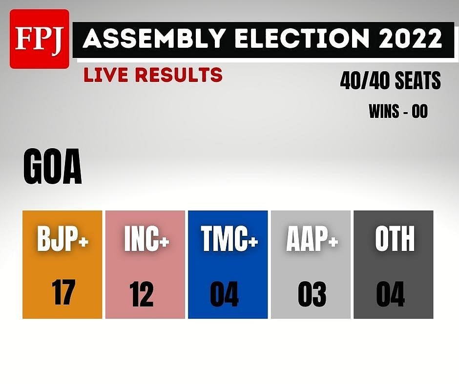 Goa (5 pm trends):ย BJP wins 20 seats, Congress wins 9 & leads on 2, Maharashtrawadi Gomantak and AAP win 2 each, Goa Forward Party and Revolutionary Goans Party win 1 each & Independent 3.ย