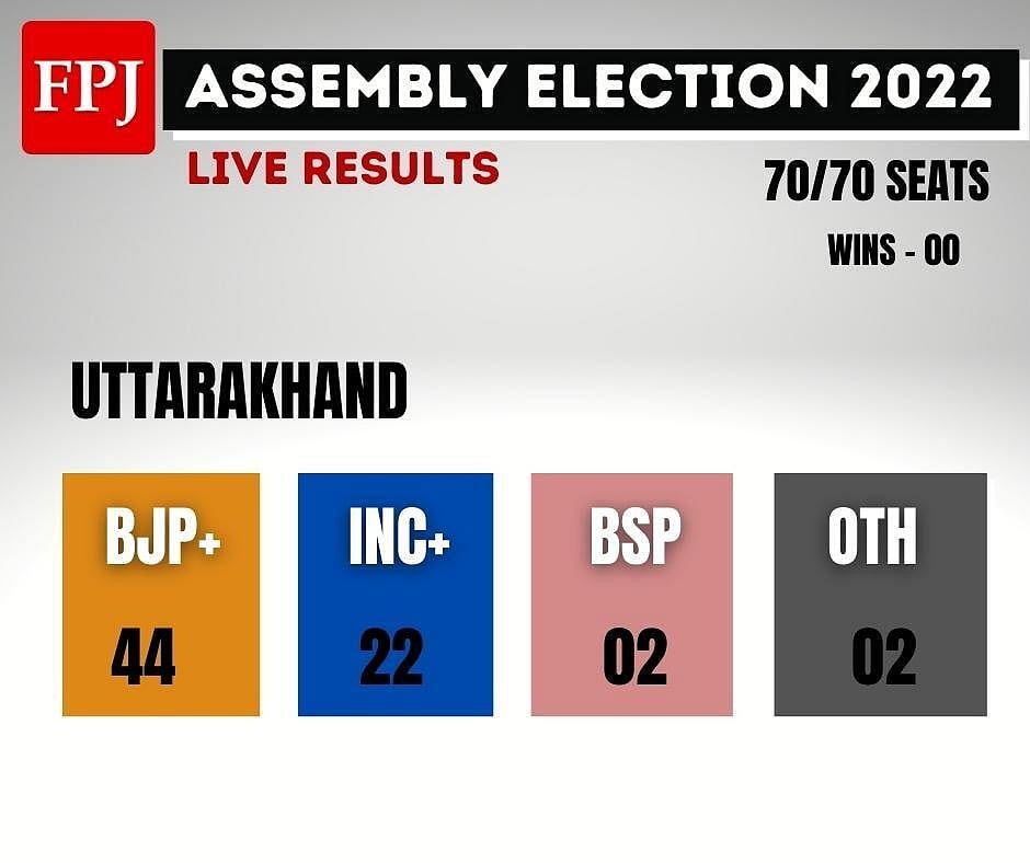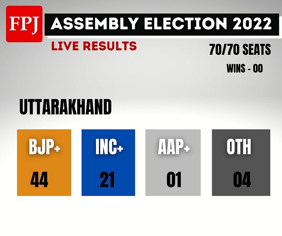 BJP comfortably crosses the majority mark, now leads on 44; Congress leads on 22 as official trends for all 70 seats for Uttarakhand Elections 2022