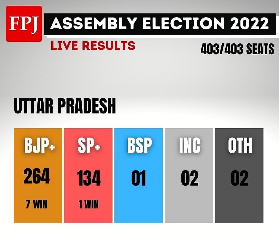 #UttarPradeshElectionResults2022 (Trends at 5 pm): #BJP records spectacular victory