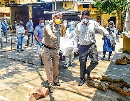 As he guides a grieving family which had just arrived at the Lodhi Crematorium here to conduct the last rites of their Covid dead, ASI Rakesh Chaudhury also keeps an eye on around 8-9 funeral pyres he helped set up. "On a daily basis, there are 20-30 bodies of corona patients that we help cremate here," Assistant police sub-inspector Rakesh Chaudhury tells PTI. He tells the bereaved relatives of the victims where they can get the material required for conducting the last rites, consoles them, at times put firewood on bodies, and even prepares funeral pyres himself when families don't. "Many a times there is just only one attendant with the body. Sometimes even when there are more they do not want to touch the body. They either sit in the parking lot or on the road, and we carry the body and help in cremation," he said.