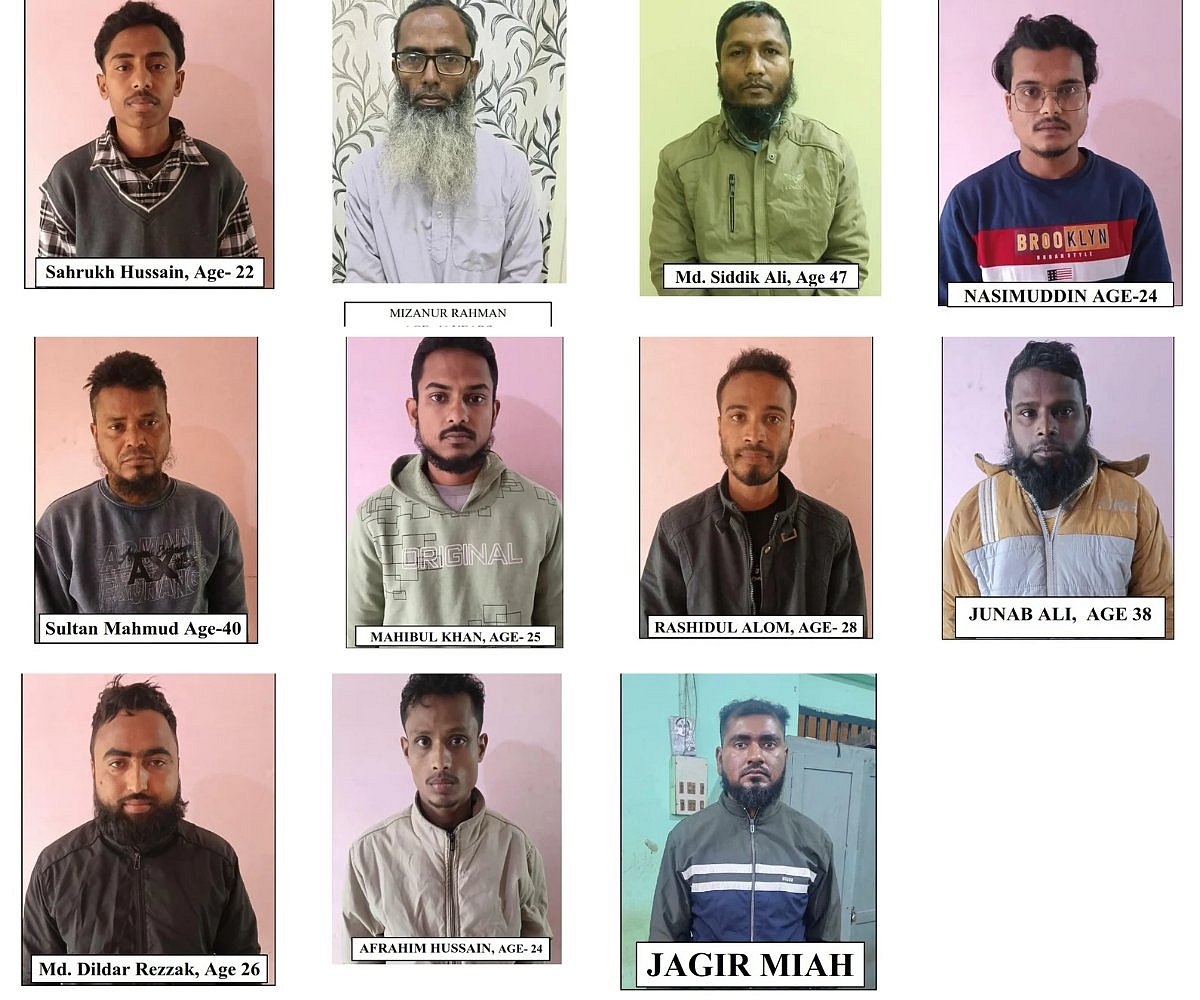 Those arrested include Nasim Uddin alias Najimuddin alias Tamim of Barpeta Road, Junab Ali of Chirang, Afrahim Hussain of Darrang, Mizanur Rehman, Sultan Mehmud, Md Siddique Ali, Rasidul Aalam, Mahibul Khan, Sharuk Hussain, Md Dilbar Razak and Jagir Miah of Tripura.