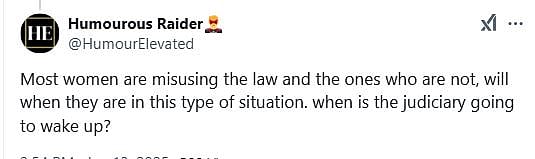 "Most women are misusing the law and the ones who are not, will when they are in this type of situation. When is the judiciary going to wake up?" wrote a user.