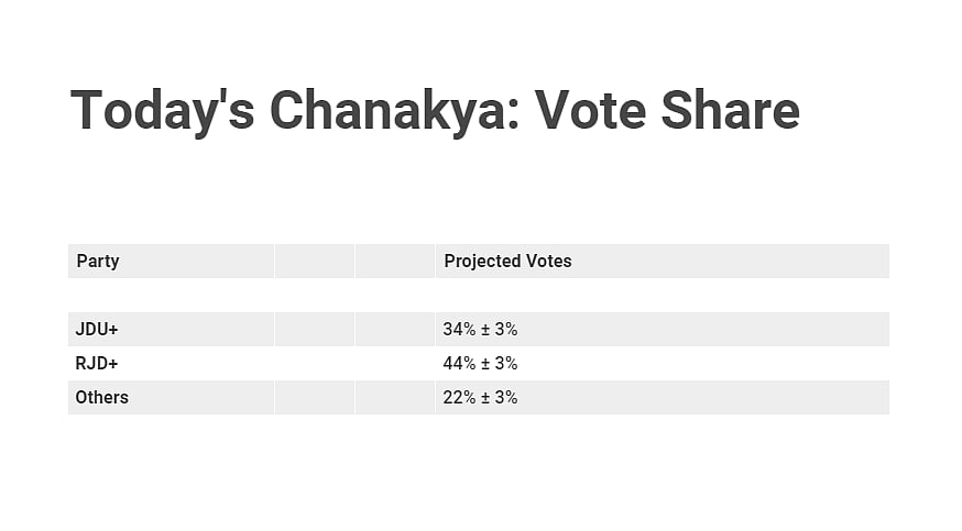 The Vote Projection, according to the Today's Chanakya survey, is as follows: