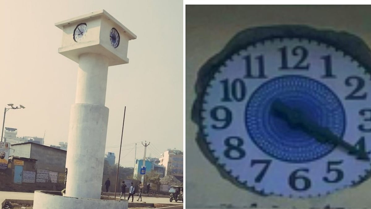 Sharing two pictures of the newly constructed clock tower, a user wrote, "This shabbily painted, poorly finished concrete clock tower in Bihar Sharif, built under the 'Smart City' project, had its clock stop working within 24 hours of inauguration."