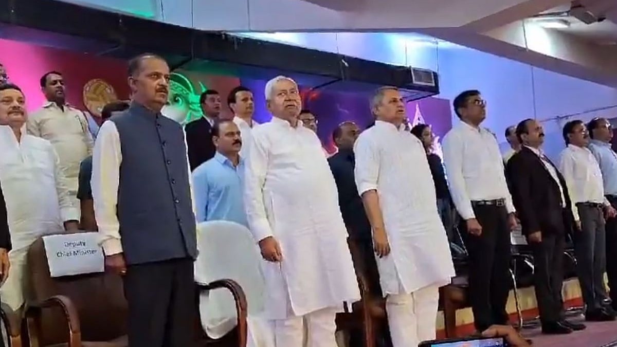The viral video shows that as the anthem played, CM Nitish Kumar started saying something to Chief Secretary Deepak Kumar, then folded his hands in greeting towards the people standing in front of him and started laughing. Principal Secretary Deepak Kumar intervened and gestured him to stand straight, but the Chief Minister again placed his hand on Deepak's shoulder and spoke to him.