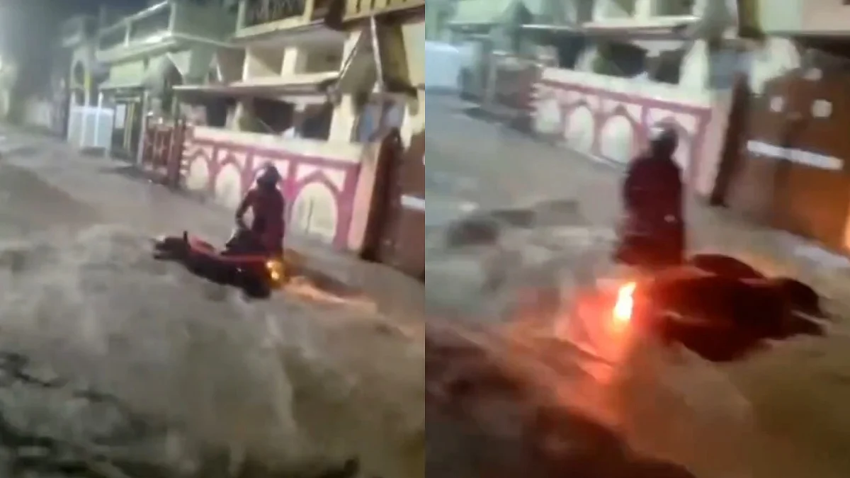 Dehradun: Heavy rains wreaked havoc in Uttarakhand, throwing normal life out of gear. A flood-like situation erupted in Uttarakhand's capital, Dehradun. A biker got swept away in the strong water current amid heavy downpour.