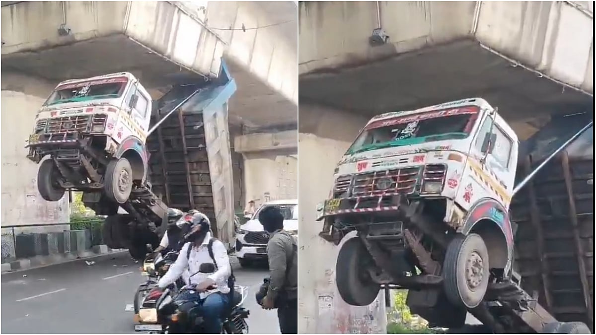 Jaipur: A bizarre incident took place in Rajasthan's capital, Jaipur, where a dumper got stuck under the elevated road on Tuesday, November 11. The incident was caught on camera, and the video surfaced online. According to reports, the rear portion of the dumper suddenly opened and got stuck under the elevated road.