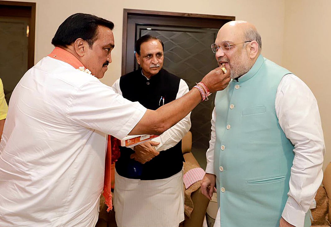 Union Home Minister Amit Shah, on a visit to Ahmedabad, congratulated CM Vijay Rupani and state BJP chief CR Patil on BJP's win.