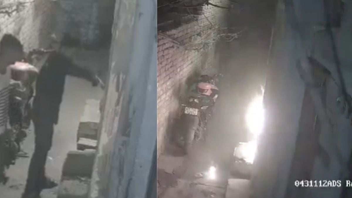 Reportedly, the incident took place late on Sunday night. The video shows two men arriving outside the house, pouring flammable material, and setting it on fire before fleeing the scene. A bike parked outside the house is also visible and could have caught fire.