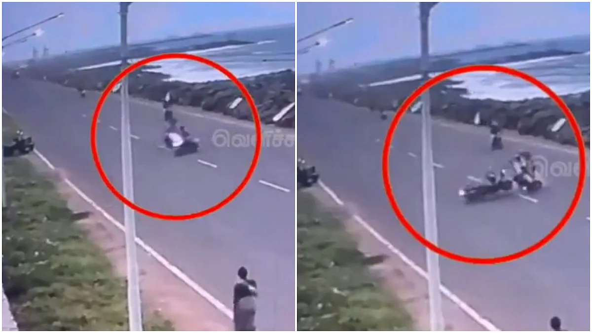 Chennai: A disturbing incident surfaced from Tamil Nadu’s Chennai district, where a scooty and a bike collided with each other. The collision took place near Ennore beach. The incident was caught on CCTV installed in the area, and its video also surfaced online on Monday, August 18.