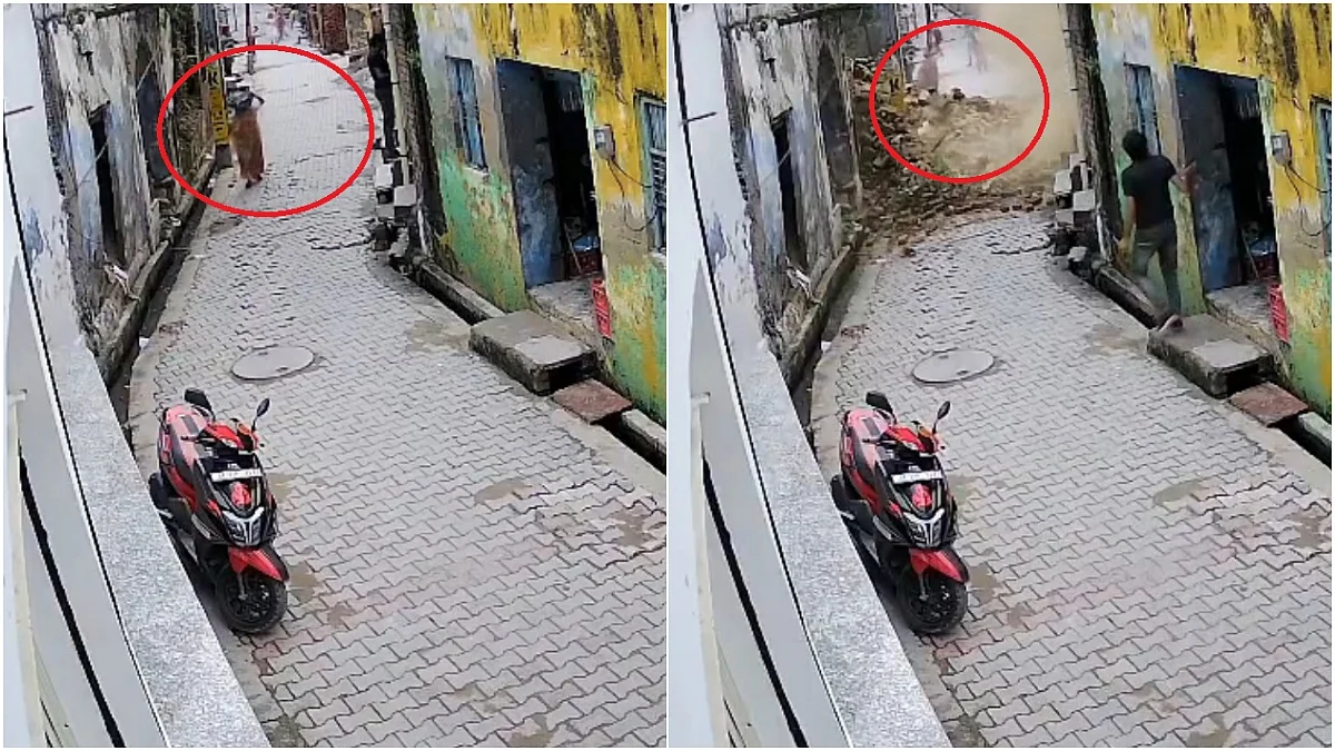 Hapur: An elderly woman had a narrow escape after an old building of a government school collapsed in Uttar Pradesh's Hapur on Monday evening. The incident was caught on CCTV installed in the area, and the video soon went viral on social media.