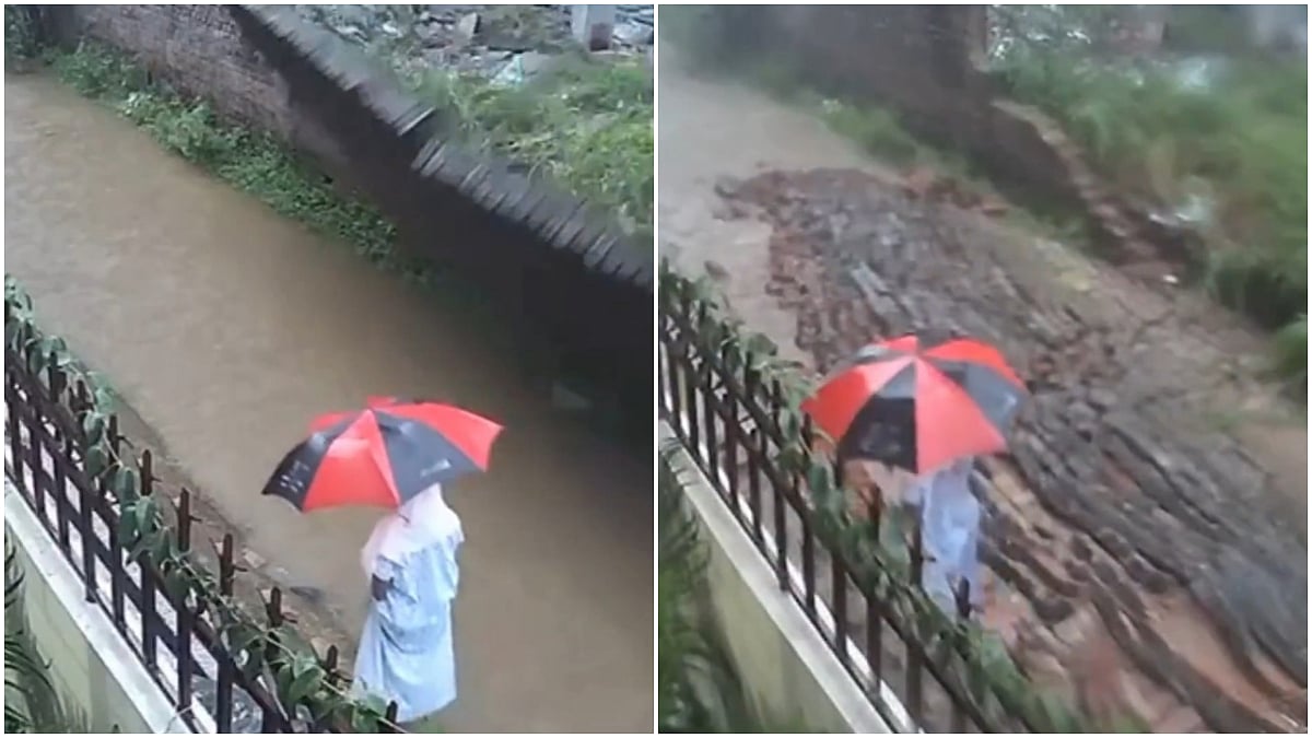 In the video, it can be seen that the wall collapsed at the moment when the woman was walking on the left side of a waterlogged lane in Ranchi. As soon as the woman reached the middle of the lane, the wall on the right collapsed.