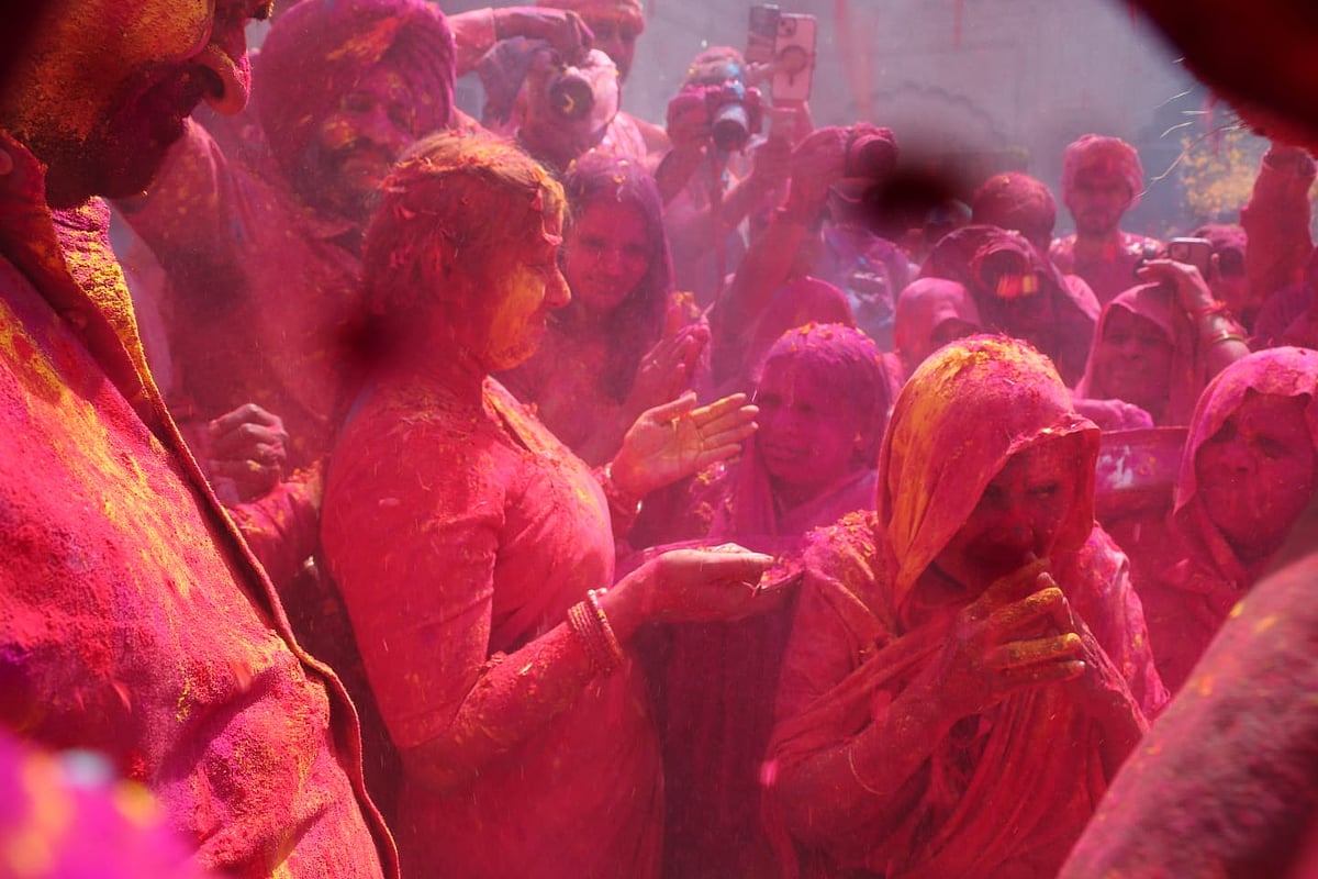 Gathering in front of Lord Gopinath, the women played Holi with dry colours and flower petals. They chanted devotional songs, danced and joyfully splashed colours on one another in a rare public display of celebration and solidarity.